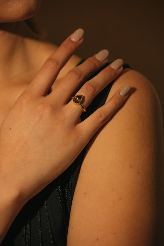 Pear Shaped Cognac Zircon Ring, Yellow Gold