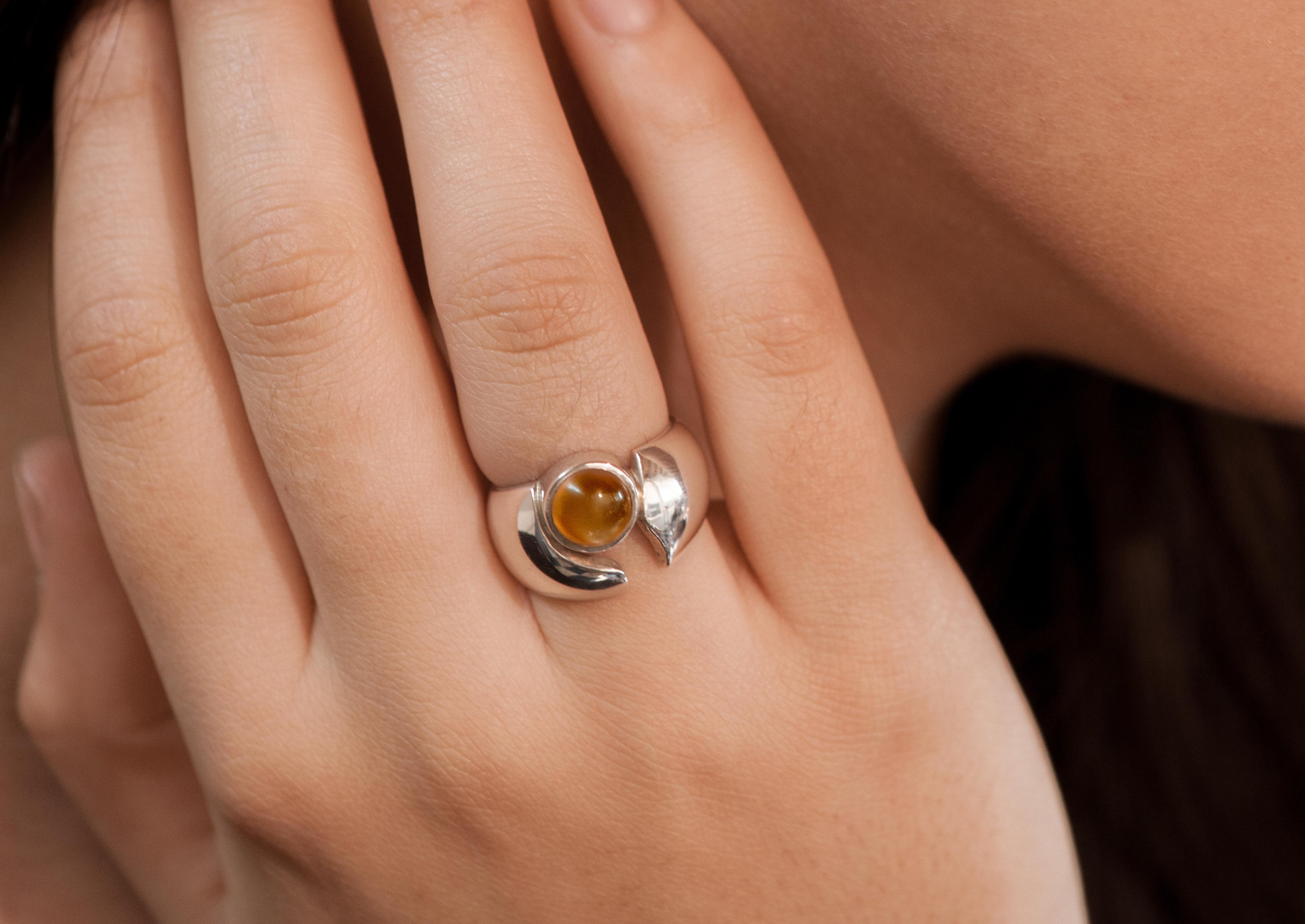 JW23 Cabochon Gemstone Ring, Sterling Silver