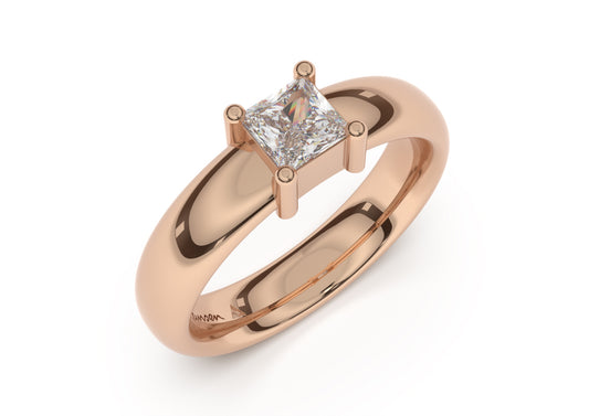 Oval Contemporary Slim Engagement Ring, Red Gold