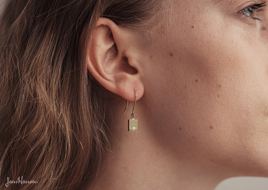 Rectangle Love Stories Diamond Earrings, Yellow Gold