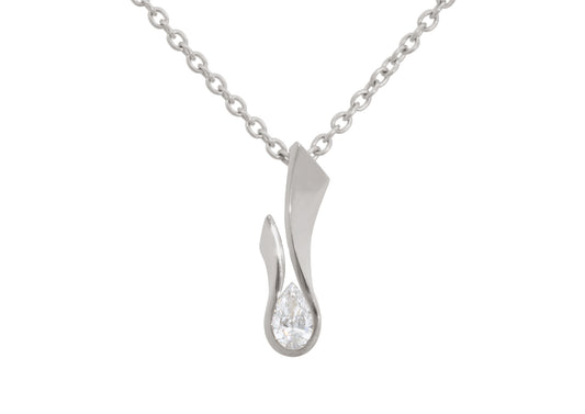 Flame Pendant with Pear Diamond, White Gold & Platinum