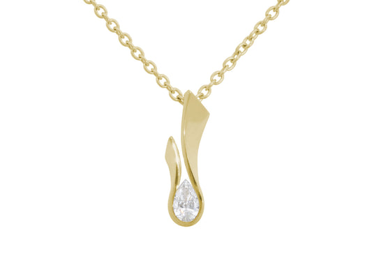 Flame Pendant with Precious Pear Gemstone, Yellow Gold