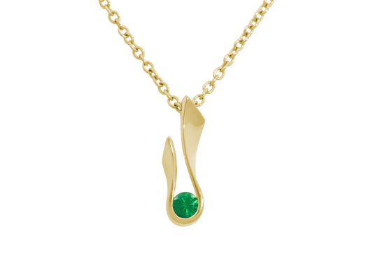 Flame Pendant with Precious Round Gemstone, Yellow Gold