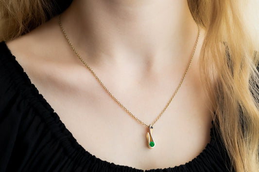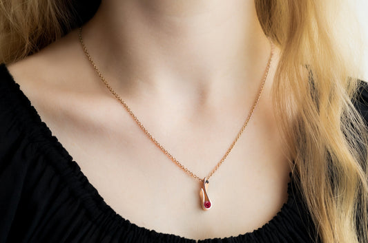 Flame Pendant with Precious Pear Gemstone, Red Gold