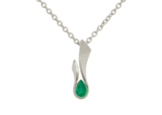 Flame Pendant with Precious Pear Gemstone, White Gold & Platinum