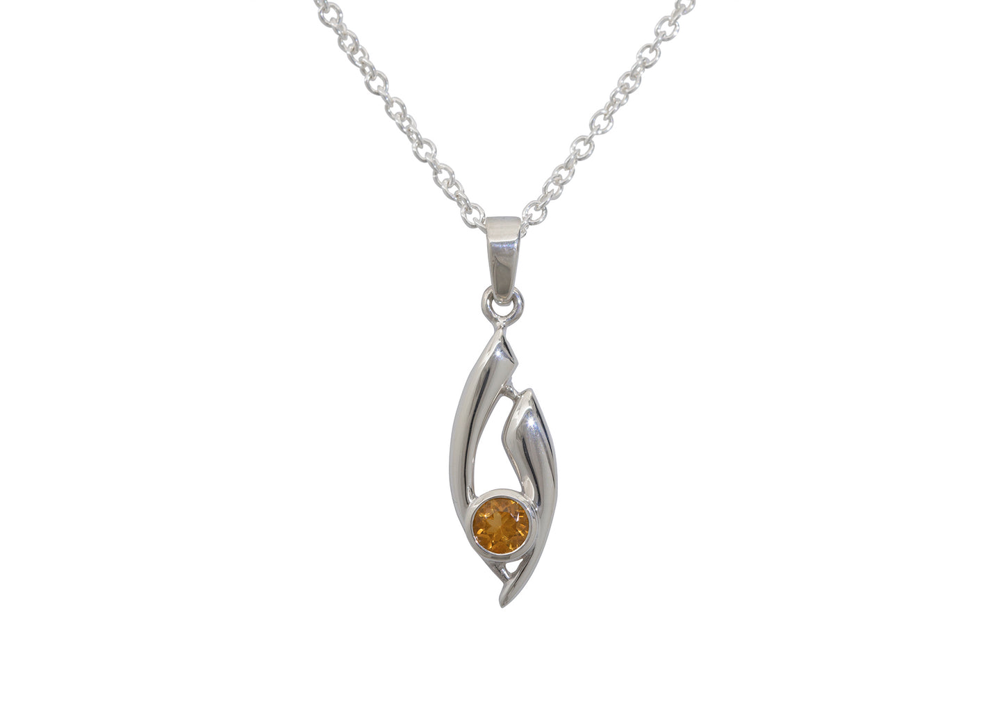 A dainty Sterling Silver free form pendant set with a glistening coloured gemstone of your choice.