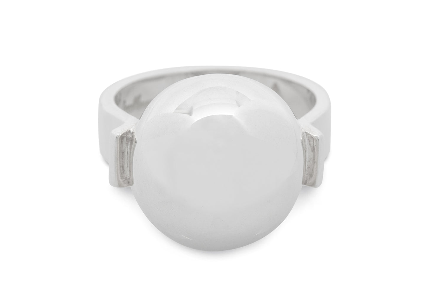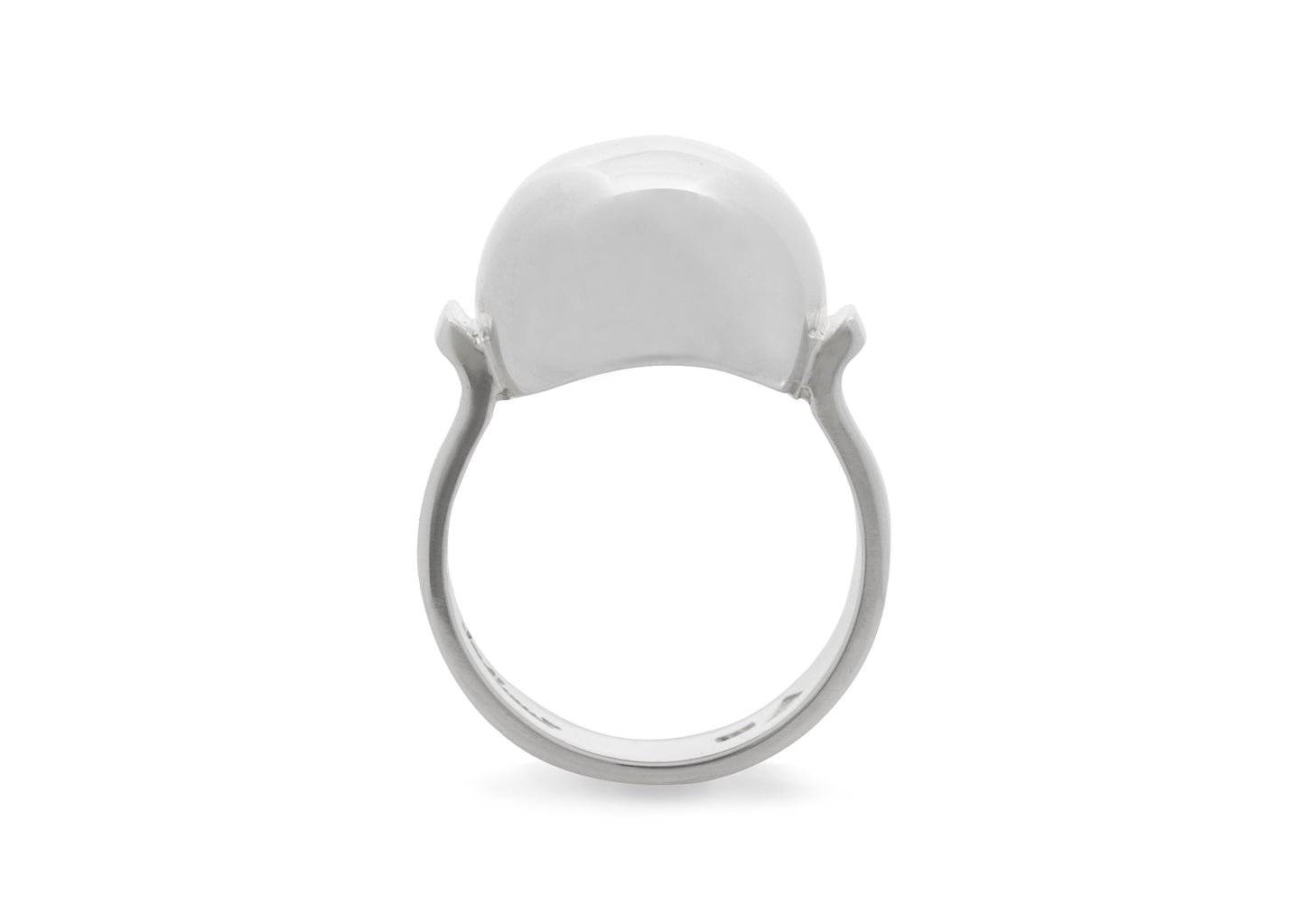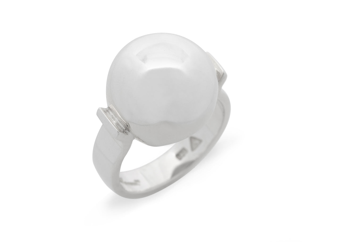 Sterling silver ring with sculpted shoulders and hollow domed top.