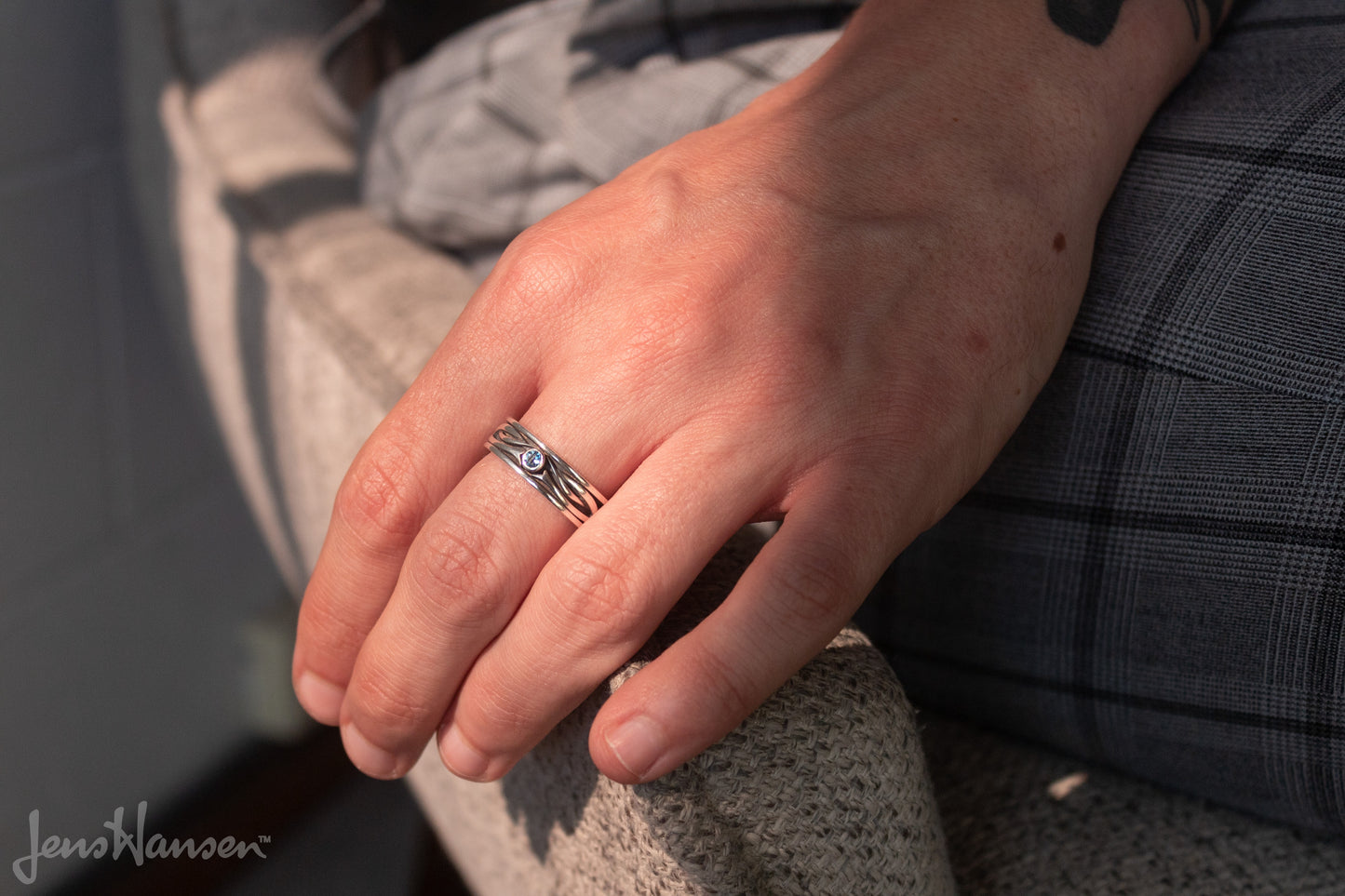 Patterned Gemstone Elvish Woodland Ring, Sterling Silver
