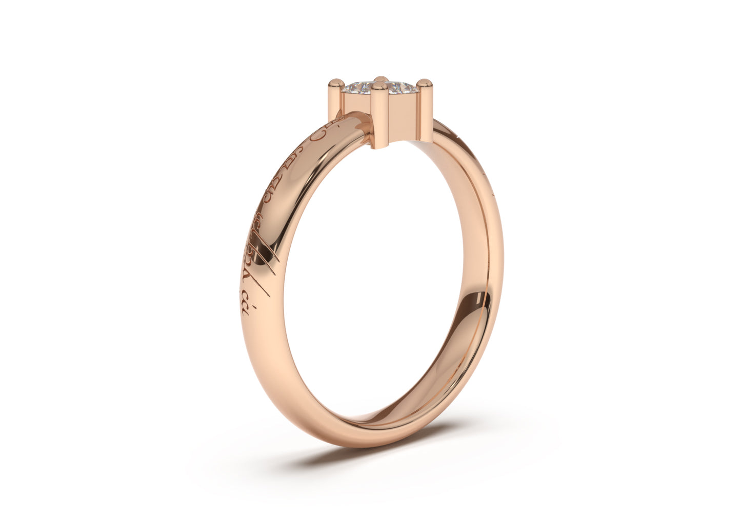 Engraving, optional: Choose None, Inside, Outside or Both Sides of the ring. For outside engraving two phrases of about 25 characters is recommended (we position the diamond between the two phrases)
