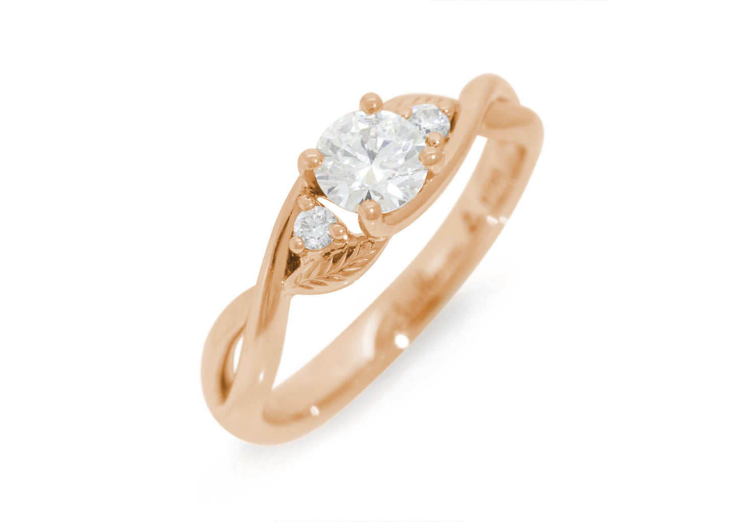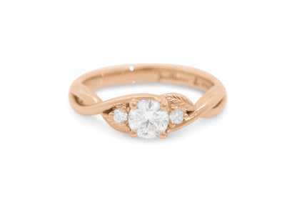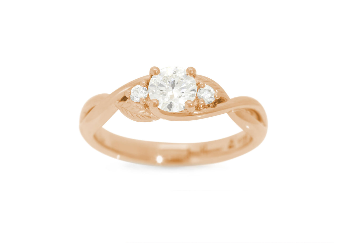 Three-Stone Round Diamond Elvish Vine Engagement Ring, Red Gold