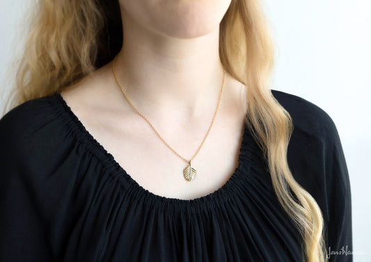 Beech Leaf Pendant, Yellow Gold