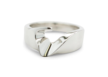 - Band style: Flat/Square band with a sculpted shape and polished finish.