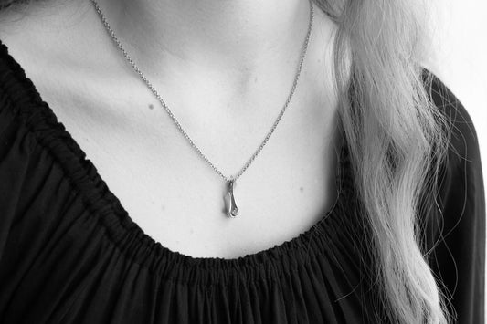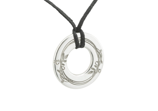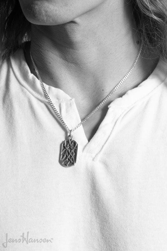 Elvish Woodland Dog Tag Pendant with Curb Chain, Sterling Silver