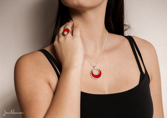 Elvish Heart Pendant, Sterling Silver with Red Gold Droplets