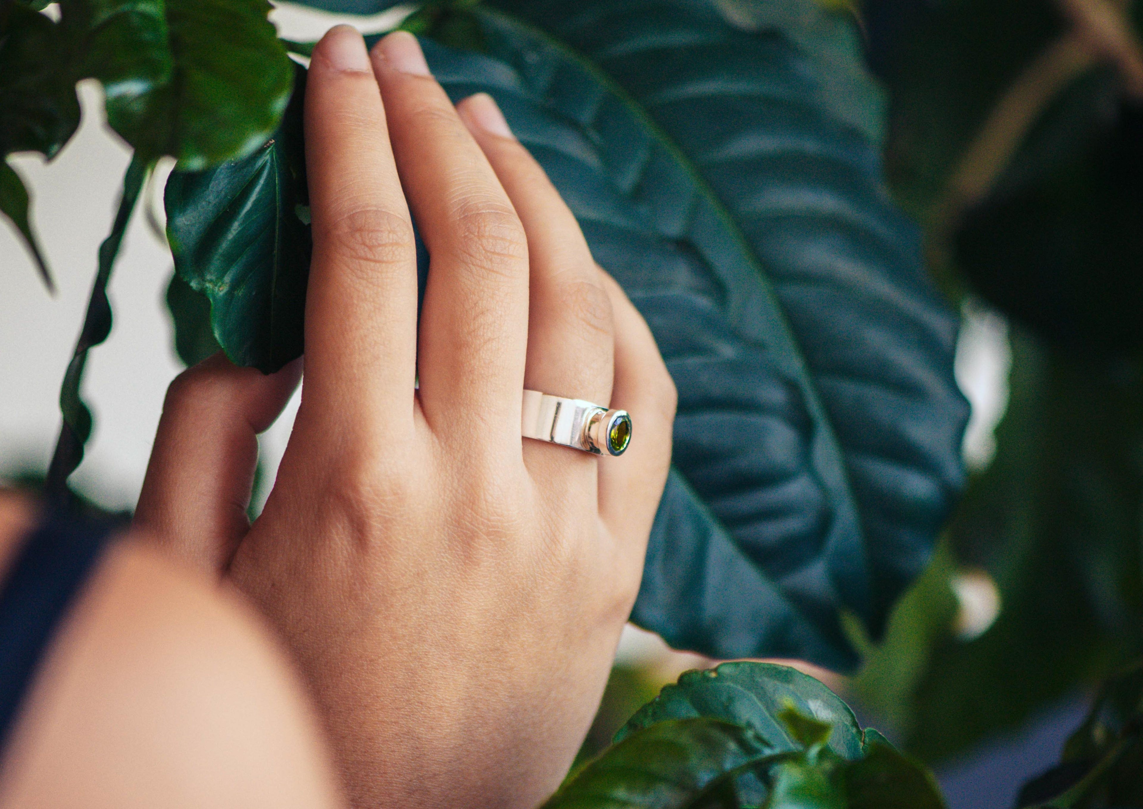 Round Chimney Gemstone Ring, Sterling Silver