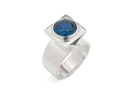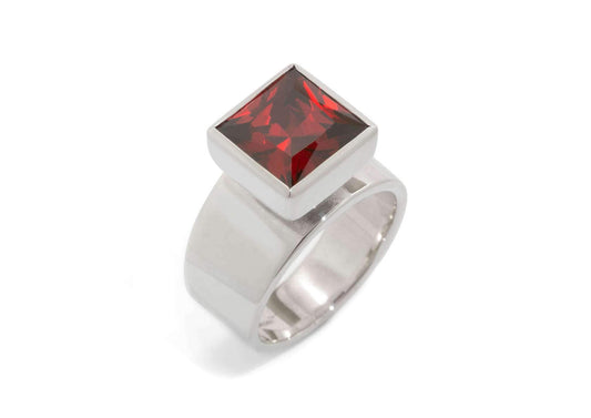 Square Pavilion Gemstone Ring, Sterling Silver