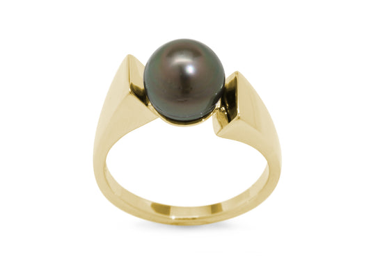 Twisted Ring with New Zealand Paua Pearl, Yellow Gold