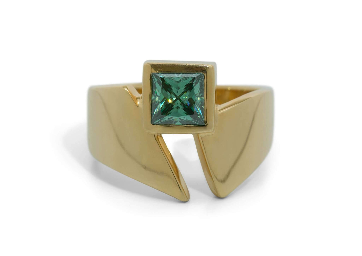 • Featured: 18ct Yellow Gold with a Mid-Green Moissanite (only1 left!).