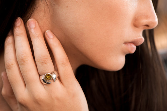 JW23 Cabochon Gemstone Ring, Sterling Silver