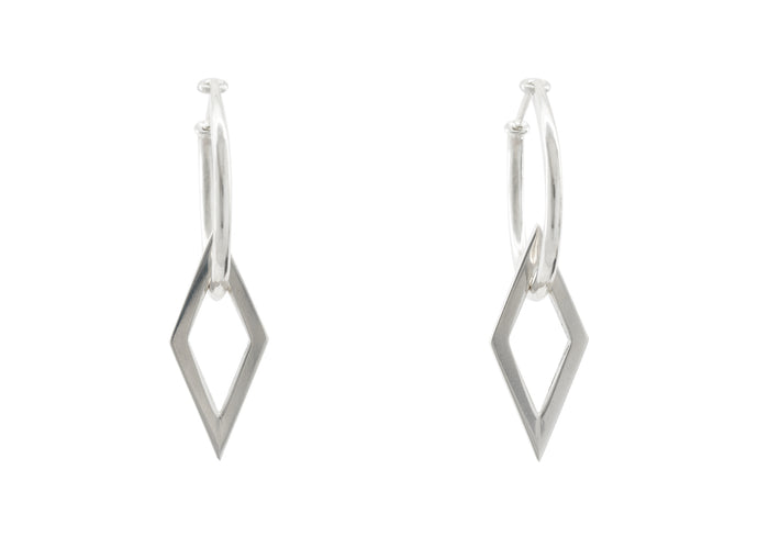 E31 Open Diamond Shape Hoop Earrings, Sterling Silver