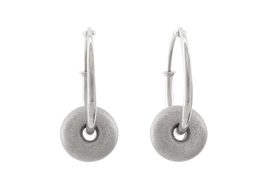 Button Hoop Earrings, Sterling Silver