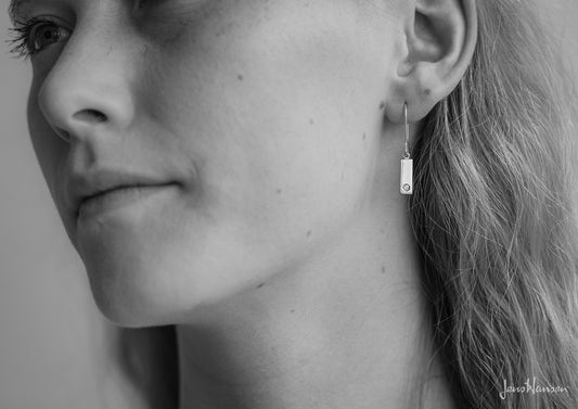 Rectangle Love Stories Diamond Earrings, Sterling Silver