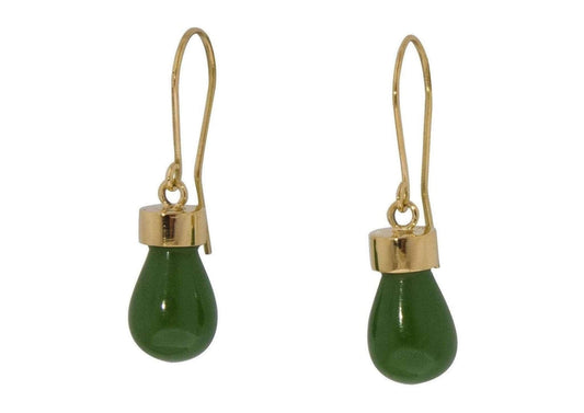 New Zealand Greenstone 'Pounamu' Earrings, Yellow Gold