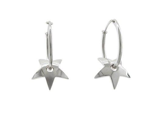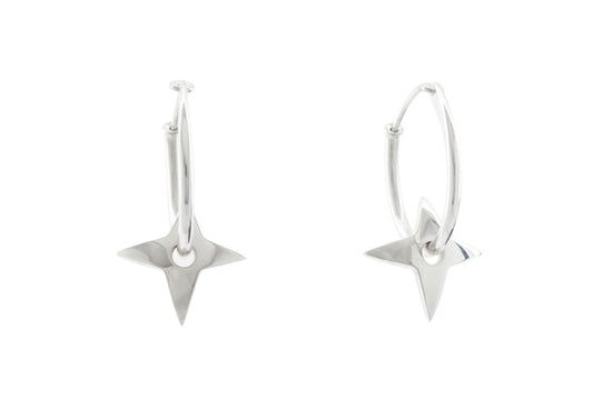E28 Four-Point Star Hoop Earring, Sterling Silver