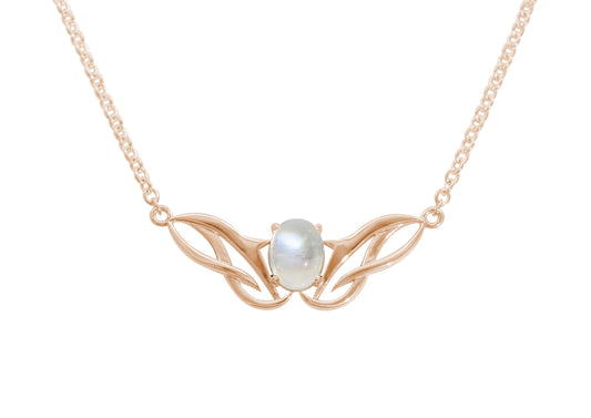 Oval Cabochon Gemstone Elvish Woodland Pendant, White Gold