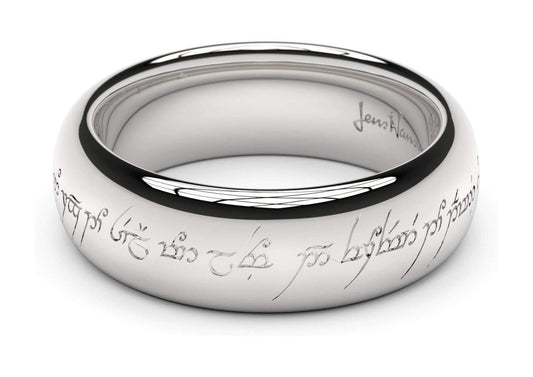 Yes. You can personalize your ring with an Elvish inscription using Jens Hansen’s in-house translation and engraving services. You can also provide your own text or symbol — in any language — and choose whether it appears on the inside or outside of the band.