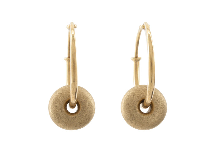 Button Hoop Earrings, Yellow Gold