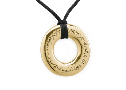 Made in solid yellow gold, The Wanderers Circle is a recreation of The Movie Ring. It has the same unique shape, weight and size. We simply transformed it into a pendant. It can be engraved in all languages. It is not licensed merchandise.
