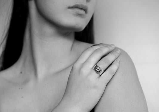 Bold Chimney Style Cubic Zirconia Ring, Yellow Gold