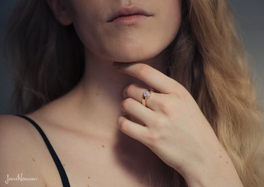 Classic Round Cabochon Gemstone Ring, Yellow Gold