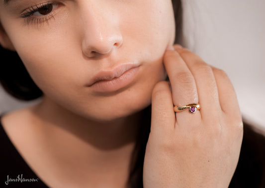 Classic Round Cabochon Gemstone Ring, Red Gold