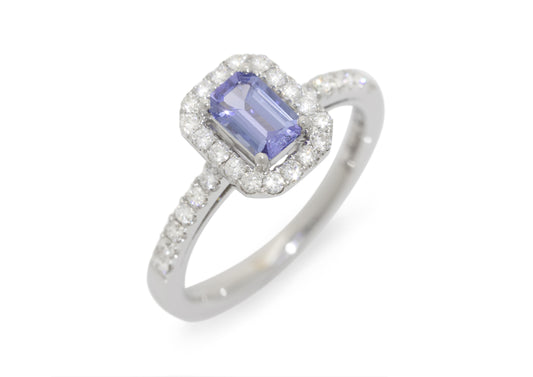 Tanzanite Diamond Halo Engagement Ring, White Gold & Platinum