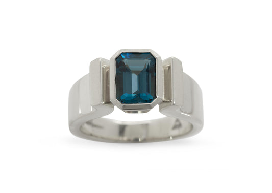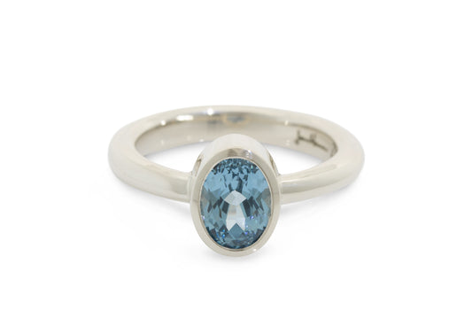 Lab Grown Aqua Blue Spinel Ring, White Gold