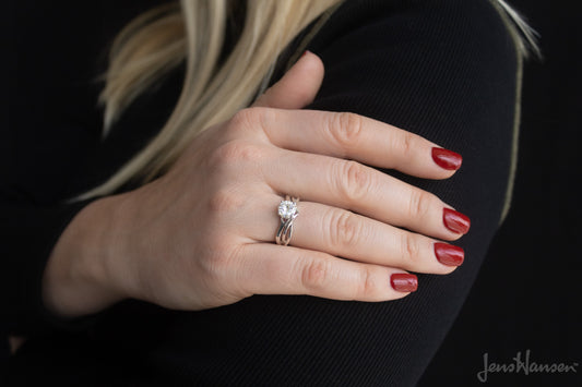 Round Gemstone Elvish Woodland Ring, White Gold & Platinum