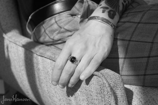 Patterned Gemstone Elvish Woodland Ring, Sterling Silver