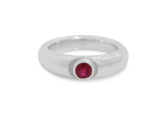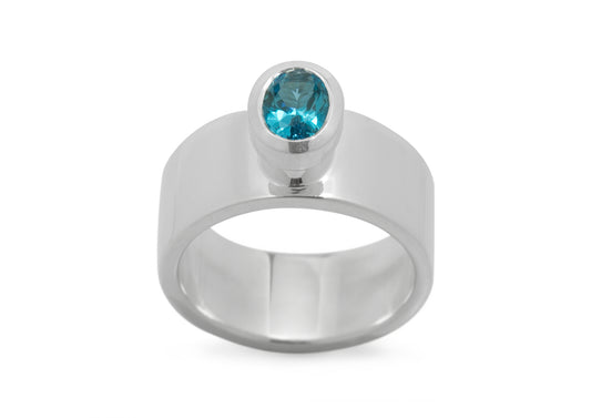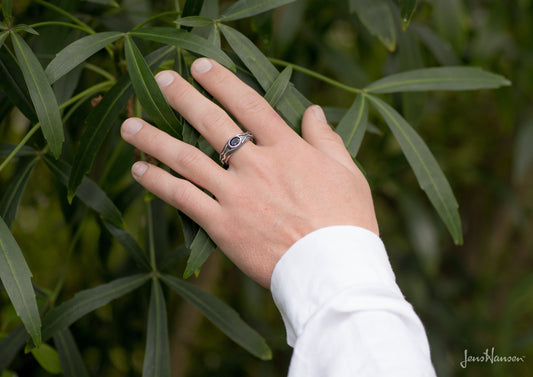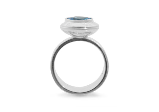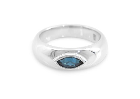 JW174 Geometric Rubover Ring with Marquise Gemstone, Sterling Silver.