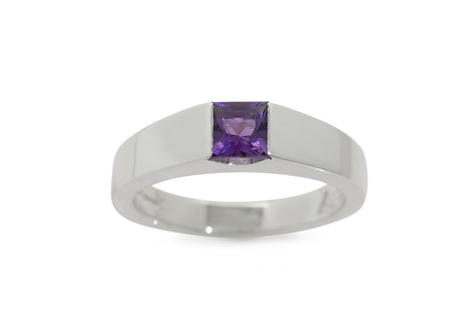 Classic Princess Cut Gemstone Ring, Sterling Silver