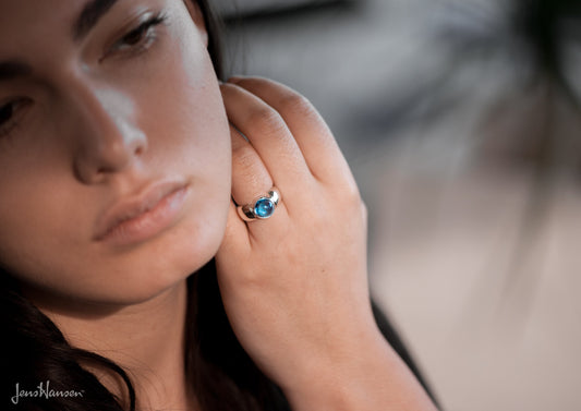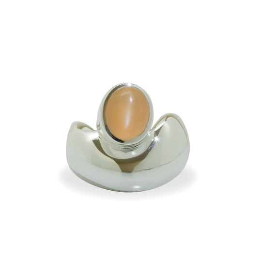 Lotus Ring in Sterling Silver with Blush Moonstone