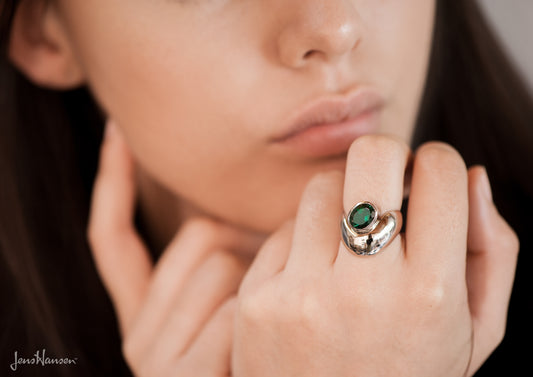 Lotus Ring in Sterling Silver with Grey Moonstone