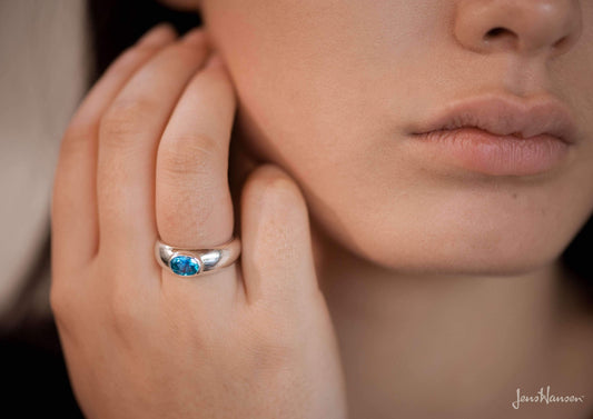 JW102 Cabochon Gemstone Ring, Sterling Silver