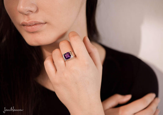 Square Pavilion Gemstone Ring, Sterling Silver