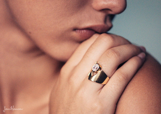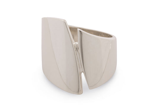 Signature Asymmetric Wide Ring, White Gold & Platinum