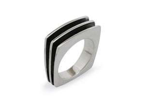 Rectangular Four Stripe Cufflinks, Sterling Silver