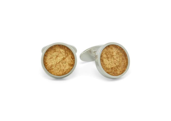 24ct Gold Leaf Round Cufflinks, Sterling Silver