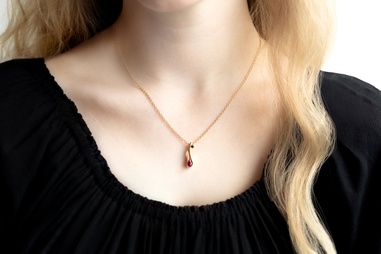 Flame Pendant with Precious Pear Gemstone, Red Gold