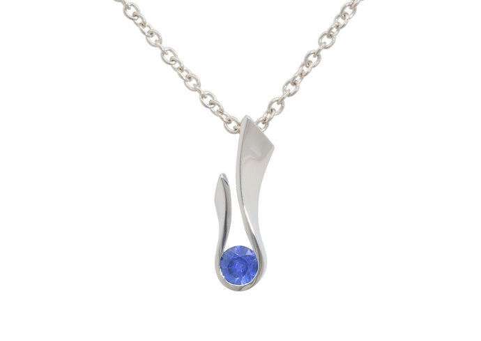 Flame Pendant with Pear Gemstone, Sterling Silver